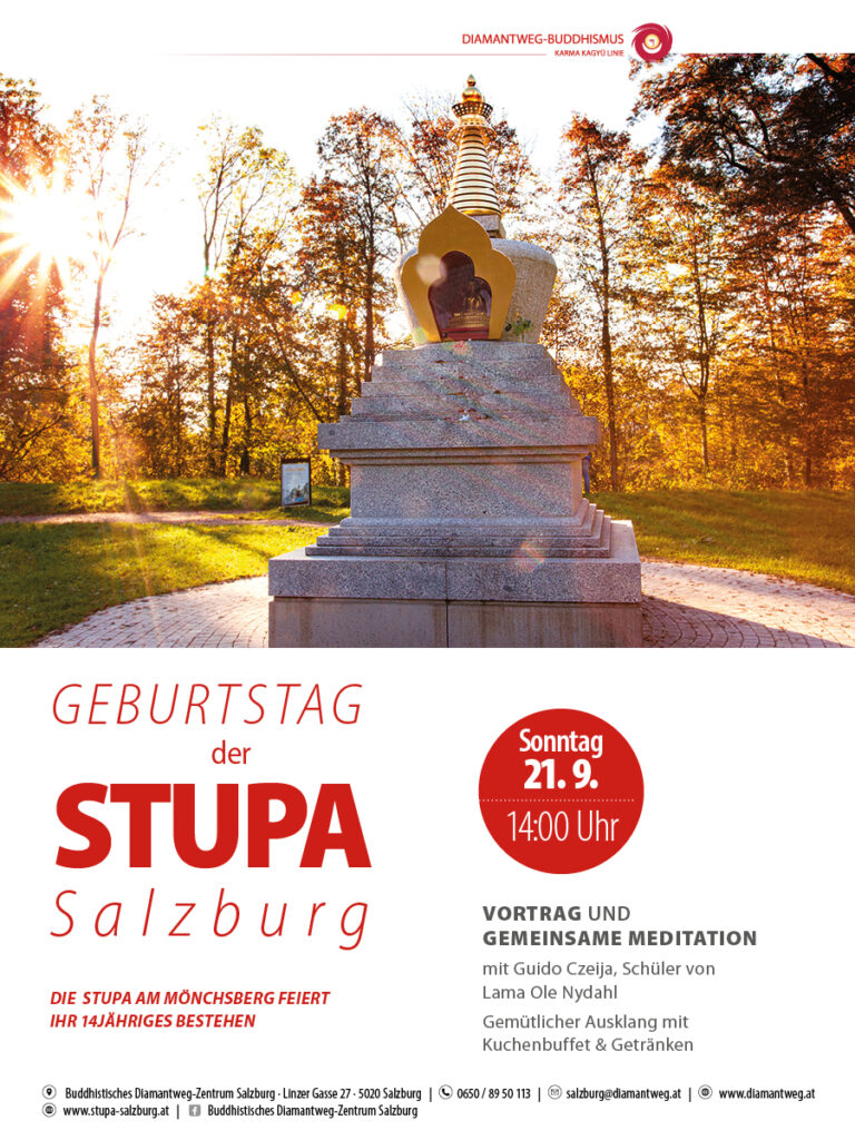 Wir feiern das 14-jährige Bestehen der Stupa Salzburg mit einem Vortrag und einer gemeinsamen Meditation.